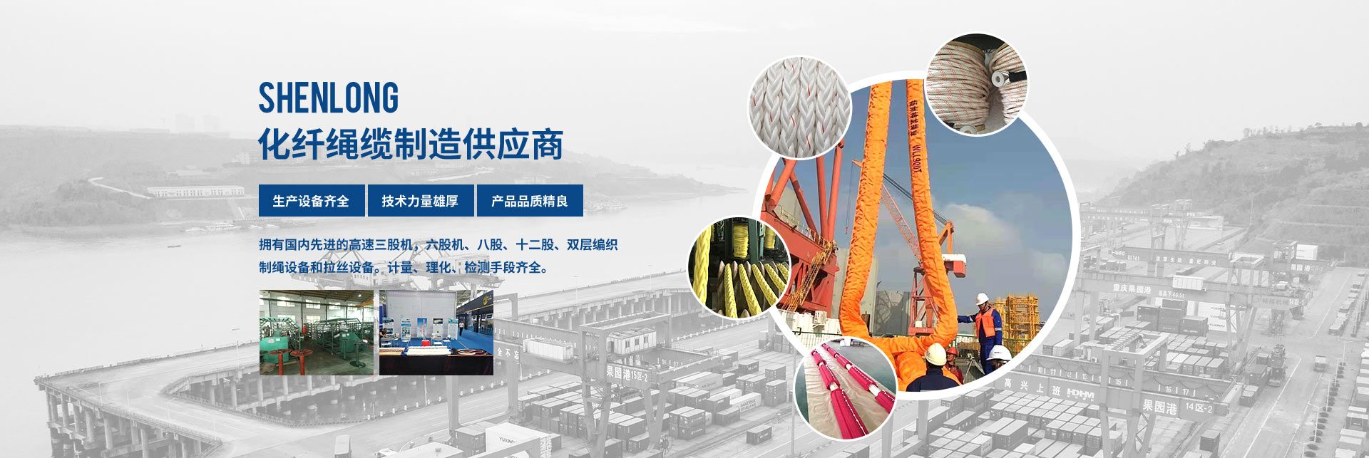 揚(yáng)州神龍繩業(yè)有限公司,位于江蘇中部古城揚(yáng)州北首,古運(yùn)河畔,中國(guó)“荷藕之鄉(xiāng)”-寶應(yīng)城西工業(yè)集中區(qū),該園區(qū)是省市中小企業(yè)創(chuàng)業(yè)示范基地、揚(yáng)州市優(yōu)化發(fā)展園區(qū)。揚(yáng)州神龍繩業(yè)有限公司是一現(xiàn)代化新型化纖繩纜的生產(chǎn)企業(yè)。交通便捷,京杭大運(yùn)河和京滬高速穿境而過(guò),環(huán)境生態(tài)優(yōu)美。截止2022年12月底,公司實(shí)際擁有固定資產(chǎn)5200多萬(wàn)元,占地建筑面積20000多平方米,標(biāo)準(zhǔn)廠房四棟及水電辦公設(shè)施齊全,機(jī)構(gòu)設(shè)置:經(jīng)理辦、技術(shù)質(zhì)量部、生產(chǎn)部、銷售部、綜合部。公司聘用10名繩纜行業(yè)高級(jí)技術(shù)人員,技術(shù)力量雄厚。擁有國(guó)內(nèi)高速三股機(jī),六股機(jī)、八股、十二股、雙層編織制繩設(shè)備和拉絲設(shè)備。計(jì)量、理化、檢測(cè)手段齊全。企業(yè)已獲得GB/T19001-2016/ISO19001:2015質(zhì)量體系認(rèn)證證書及中國(guó)船級(jí)社(CCS)、法國(guó)船級(jí)社(BV)、挪威德國(guó)船級(jí)社(DNV.GL)、日本(NK)工廠認(rèn)可證書。于2016年12月取得了解放軍裝備承制單位注冊(cè)證書,獲得了高新技術(shù)產(chǎn)品的認(rèn)定證書、江蘇省民營(yíng)科技企業(yè)稱號(hào),并獲得了實(shí)用型專利,“高強(qiáng)度無(wú)捻絲滌綸樹(shù)脂插編復(fù)合繩”,專利號(hào)“ZL 2017 2 0221636.8”和多股牽引繩纜、高強(qiáng)度無(wú)捻絲海洋勘探耐磨腐防蝕止合成纖牽引繩高新技術(shù)產(chǎn)品認(rèn)定證書。為祖國(guó)的邊防和航運(yùn)業(yè)貢獻(xiàn)一點(diǎn)力量。按國(guó)際標(biāo)準(zhǔn)生產(chǎn)“繩龍”牌化纖繩纜,品種多、規(guī)格全、年生產(chǎn)能力達(dá)3000噸以上。主要生產(chǎn)錦綸(聚酰銨)、丙綸(聚丙烯)、滌綸(聚酯),超高分子聚乙烯等系列產(chǎn)品,結(jié)構(gòu)有;三股、四股、六股、八股、十二股、雙層編織繩索。規(guī)格從Ф4mm~Ф120mm系列產(chǎn)品任你選擇。可根據(jù)客戶需要生產(chǎn)特殊用途規(guī)格繩索。具有強(qiáng)力高,伸長(zhǎng)低、抗磨耐腐,便于操作。產(chǎn)品性能指標(biāo)均符合相關(guān)的國(guó)際標(biāo)準(zhǔn)和國(guó)家標(biāo)準(zhǔn)要求,廣泛應(yīng)用于遠(yuǎn)洋運(yùn)輸、船舶制造、漁業(yè)捕撈、港口作業(yè),國(guó)防軍工、石油勘探等領(lǐng)域,取得市場(chǎng)廣泛認(rèn)可和市場(chǎng)占有率。近年來(lái)本公司奉行“以質(zhì)為本,誠(chéng)信經(jīng)營(yíng),優(yōu)良服務(wù),顧客滿意”的宗旨,竭誠(chéng)為廣大用戶提供優(yōu)良產(chǎn)品和服務(wù)。推動(dòng)質(zhì)量管理的深入開(kāi)展,加強(qiáng)員工的質(zhì)量意識(shí),進(jìn)一步提高產(chǎn)品質(zhì)量,滿足市場(chǎng)和用戶的需求,為用戶服務(wù)。